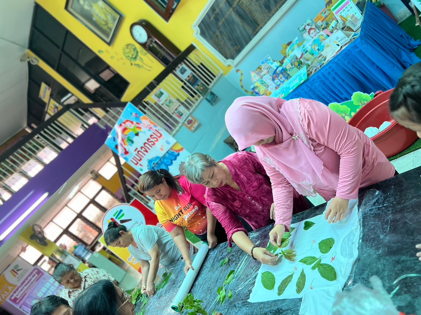 จัดสอนหลักสูตร ""ผ้าeco-print"" โดยมี นางสาวนูรไอนี เหล็บหนู และนางสาววณัฐดา ไพบูลย์สมบัติ บรรณารักษ์ศูนย์เรียนรู้ต่อเนื่องอย่างยั่งยืน