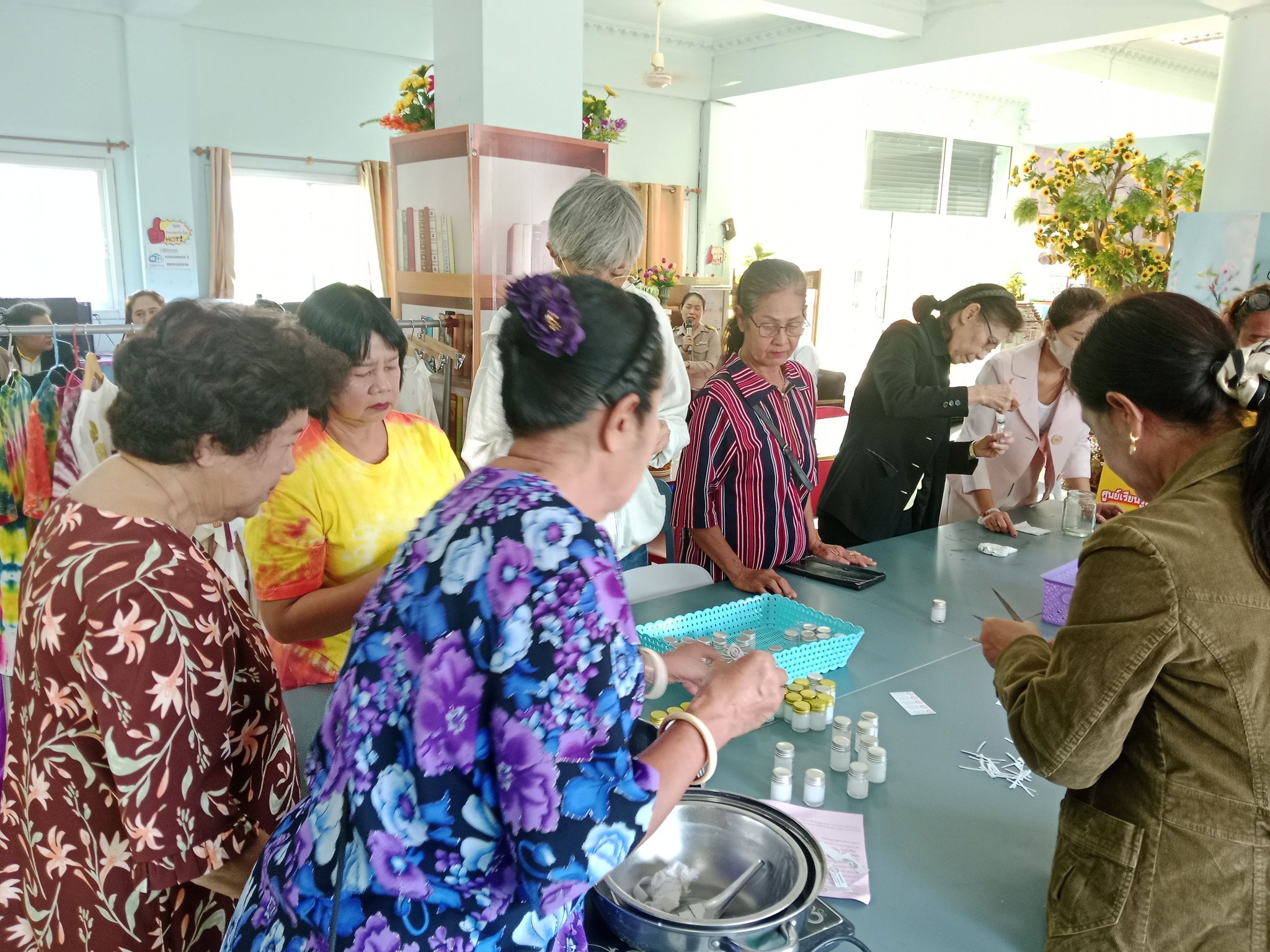 จัดหลักสูตรการทำยาหม่องสมุนไพร โดยมีนางศรีเฉลียว จักรทอง บรรณารักษ์ เป็นวิทยากร เพื่อสร้างความรู้