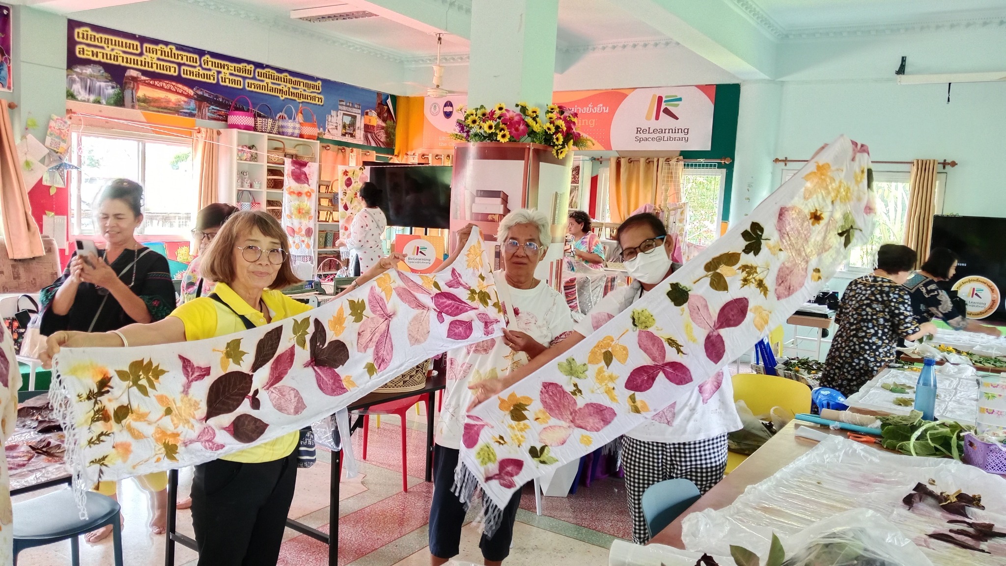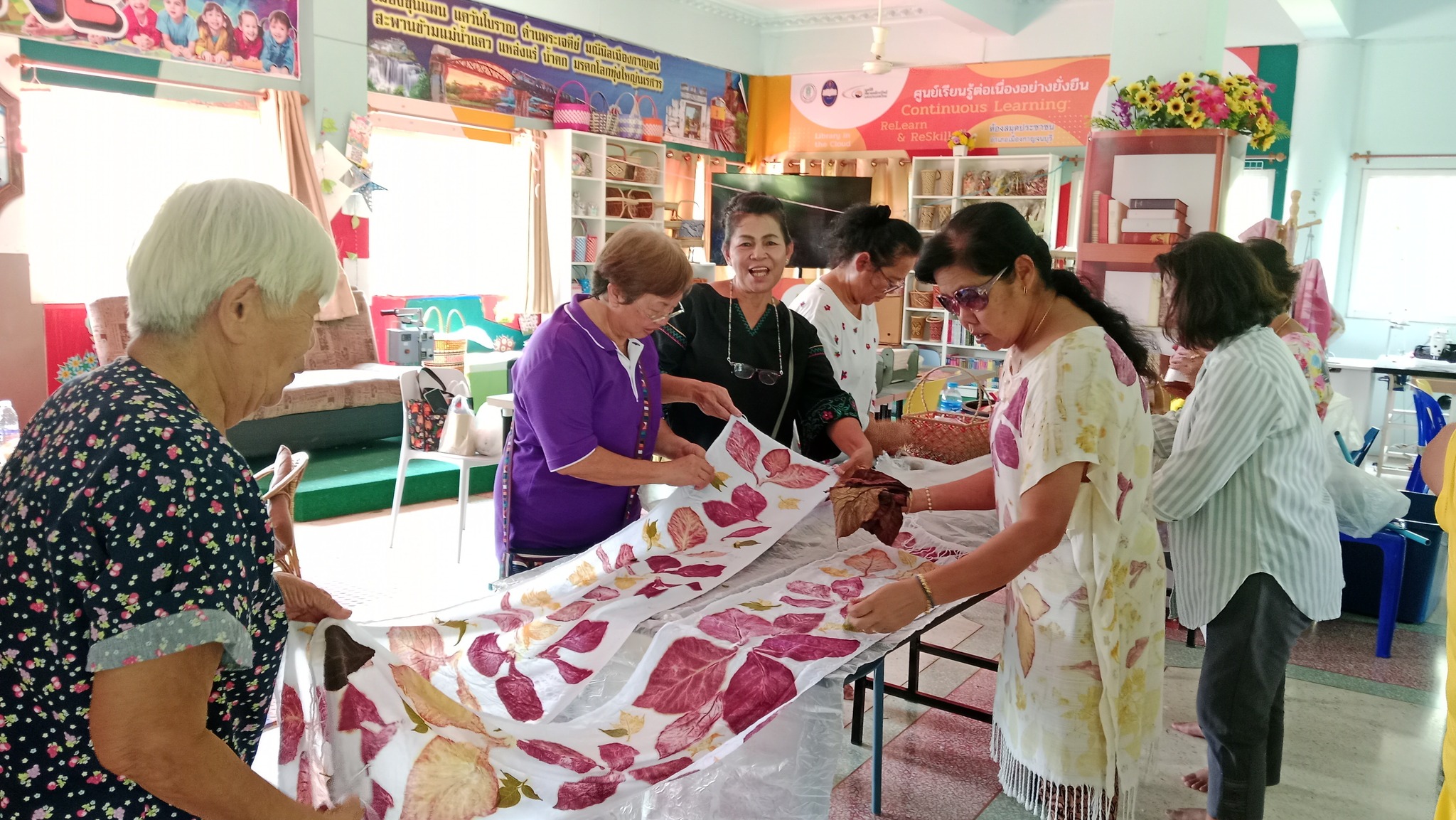 จัดกิจกรรมส่งเสริมการเรียนรู้หลักสูตร การทำผ้าพิมพ์ใบไม้ (สะไบ) เพื่อ "สร้างความรู้ สู่ทักษะ เสริมรายได้ ให้ความสุข"