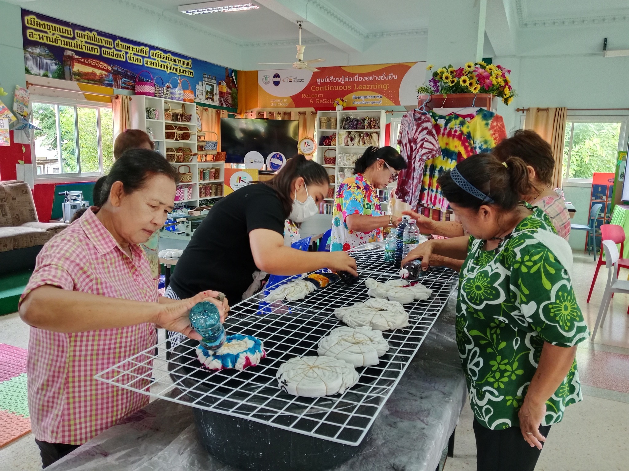 โดยห้องสมุดประชาชนอำเภอเมืองกาญจนบุรี สอนหลักสูตรการทำผ้ามัดย้อม โดยมีนางศรีเฉลียว จักรทอง บรรณารักษ์ห้องสมุดประชาชนอำเภอเมืองกาญจนบุรี เป็นวิทยากร