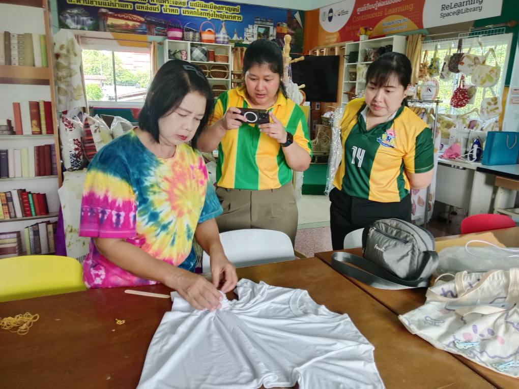 จัดสอนหลักสูตรการทำผ้ามัดย้อม โดยมีนางศรีเฉลียว จักรทอง บรรณารักษ์ เป็นวิทยากร