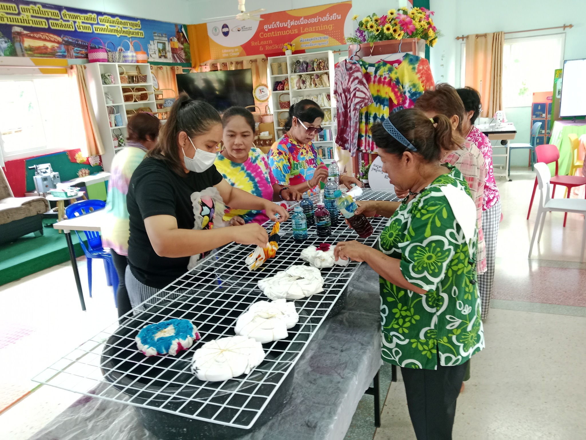 โดยห้องสมุดประชาชนอำเภอเมืองกาญจนบุรี สอนหลักสูตรการทำผ้ามัดย้อม โดยมีนางศรีเฉลียว จักรทอง บรรณารักษ์ห้องสมุดประชาชนอำเภอเมืองกาญจนบุรี เป็นวิทยากร