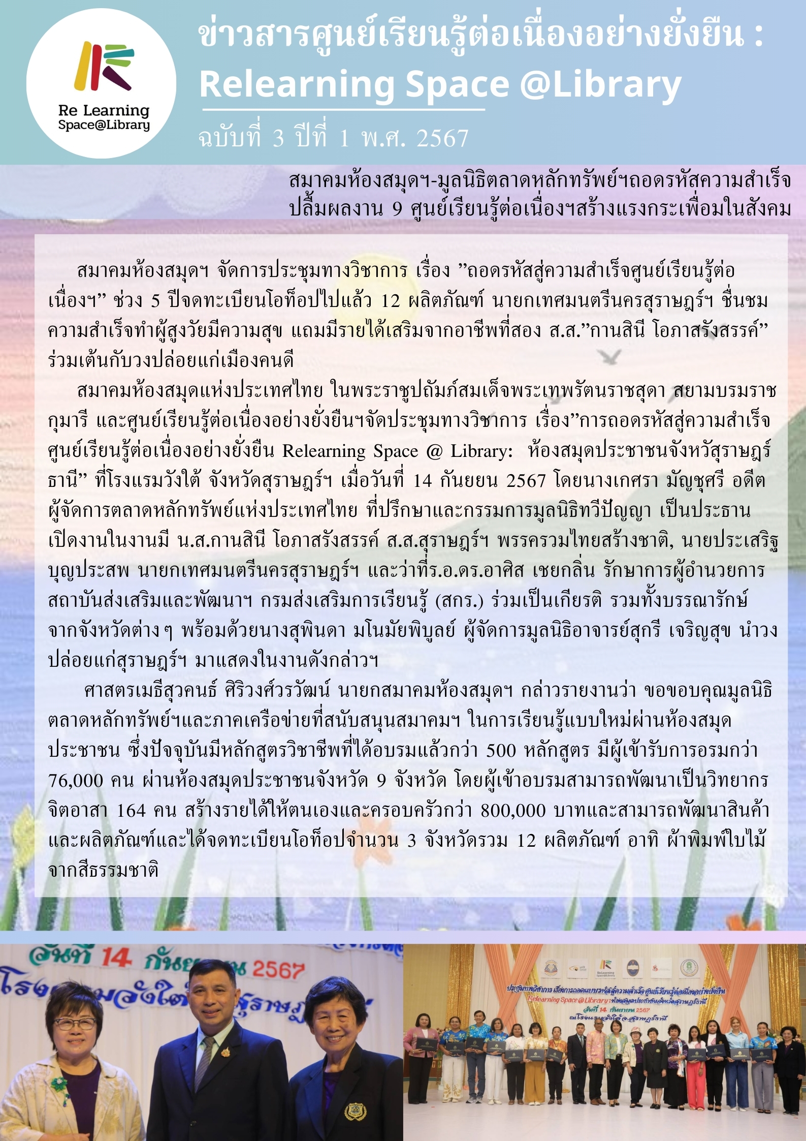 ข่าวสาร/กิจกรรมศูนย์เรียนรู้ประจำปี 2567